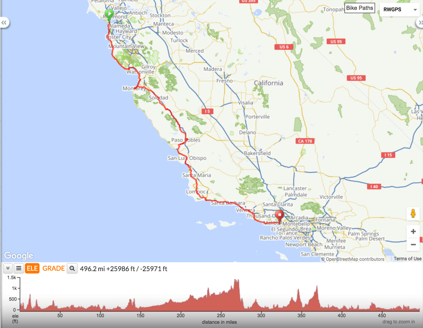 Day 5 – Paso Robles to Pismo Beach, 56 miles, 3000ft of climbing