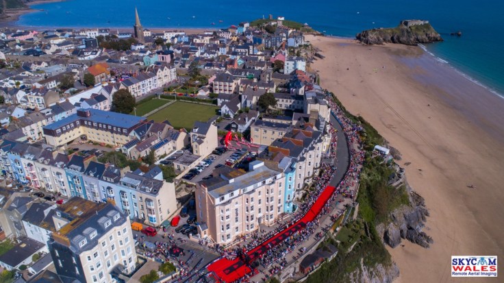 Tenby’s North Beach is a natural amphitheater and the crowds line up along the top of the cliffs to watch the swim. There were thousands of supporters out as we headed down the zig-zag stairs to get staged on the beach.