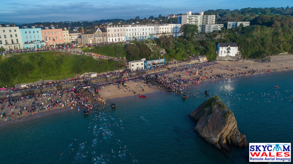 The swim is two laps of a 1.2 mile course that heads out to the left of Goscar Rock, turns towards the lifeboat stations and then back to the beach to the right of the rock. A quick run across the sand, and repeat!