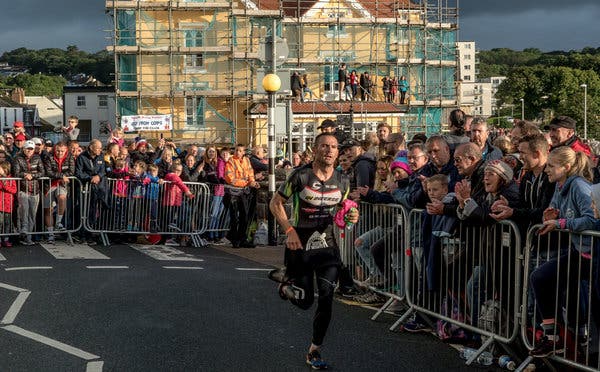 It was incredible on the section out towards the lifeboats to see the colored houses and thousands of spectators lining the cliffs every time I took a breath. Before I knew it I was back on the beach for my second lap, after the taxing 100 yard run on the sand. When you’ve been laying down for 40 minutes swimming, it’s a very odd sensation to stand up and start running.